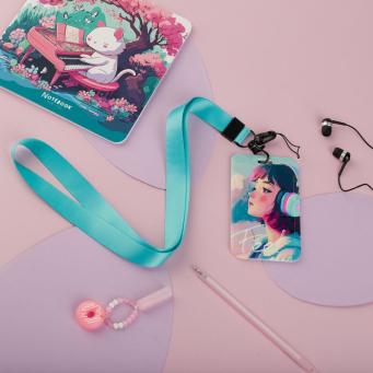 Бейдж вертикальный MESHU "Kitsune", 110*70мм, петля с карабином, 2D печать, опп пакет с европодвесом